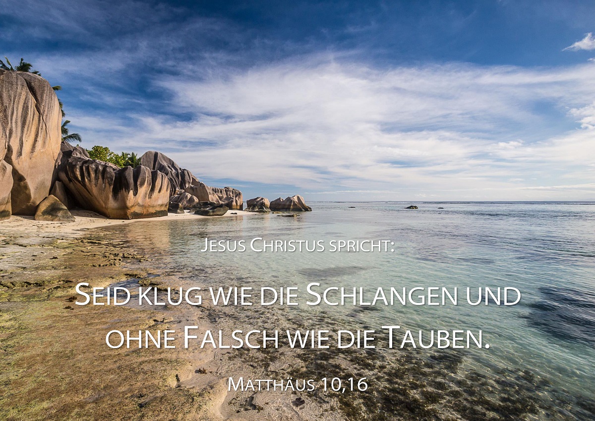 Jesus Christus spricht: Seid klug wie die Schlangen und ohne Falsch wie die Tauben (Matthäus 10,16)